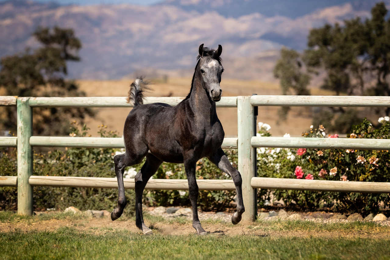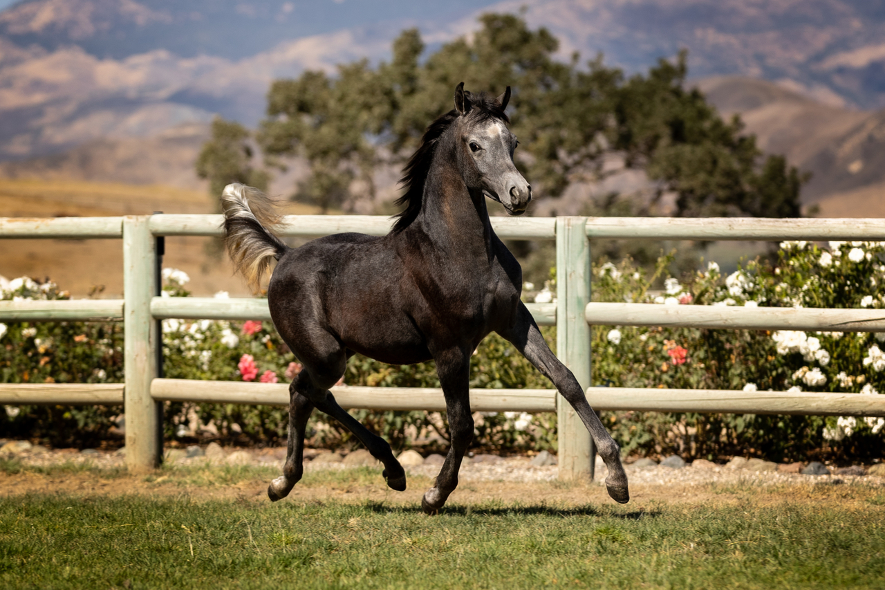 مهر شاب شديد الثقة والاعتزاز بنفسه، فلديه بنية جسدية قويمة، كما تتميز عنقه وكتفاه بمظهر رائع، ناهيك عن جمال منطقة الرأس. يُظهر AKMAL ALJASSIMYA قوة متفجرة في حركته ولديه إمكانات تؤهله للانضمام إلى مصاف خيول العروض العظيمة.
