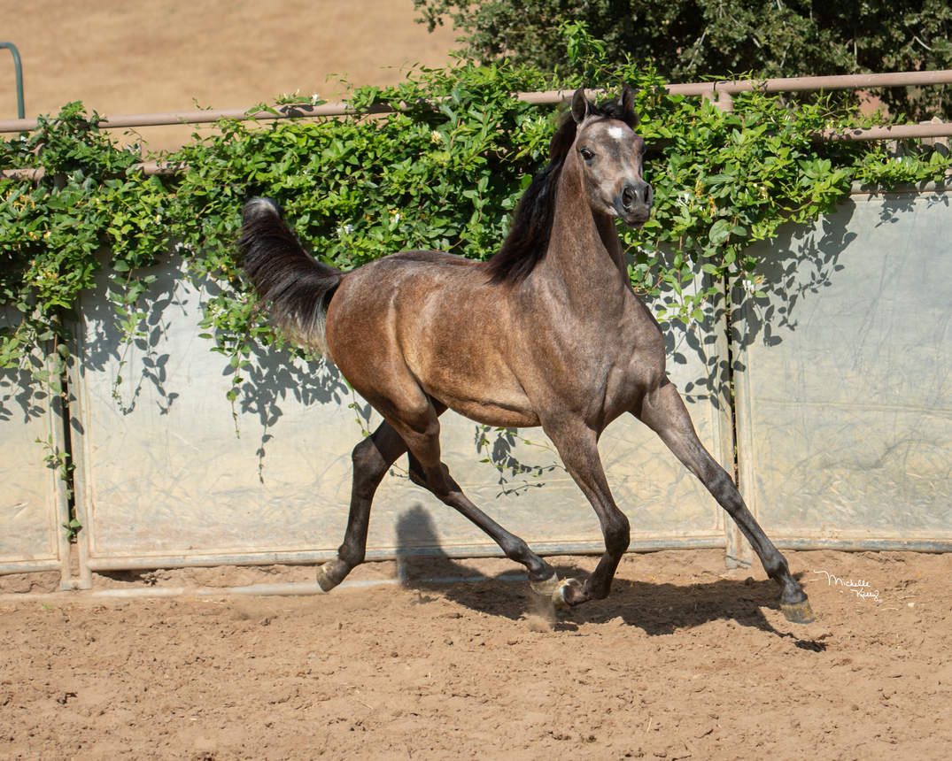 IJAZ ALJASSIMYA is blessed with huge eyes, smooth body, and long legs. He will be a beautiful hunter in the future, halter and performance horse.